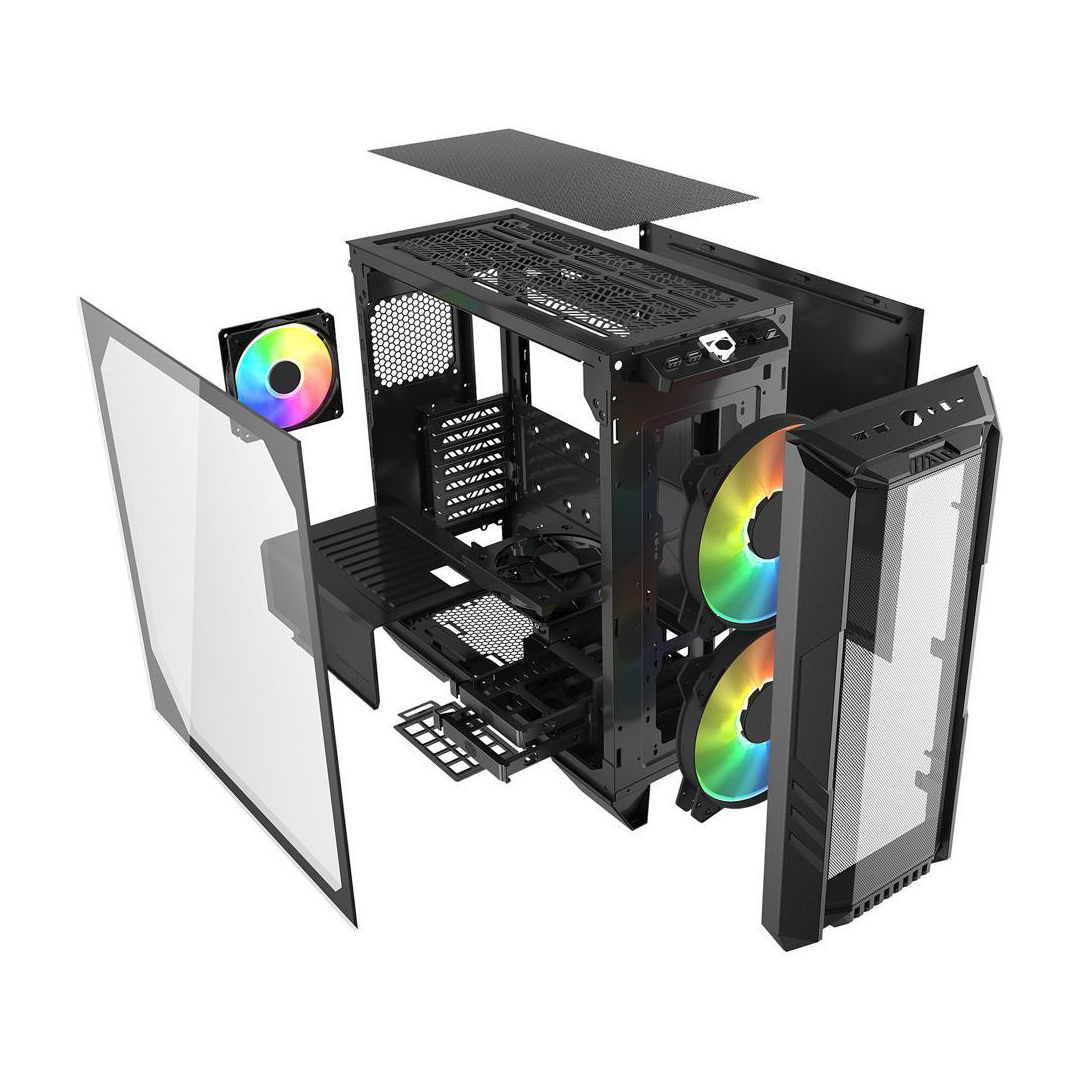 case cooler master mastercase haf 500 argb – mid tower – tempered glass – itx – 2 fan 200mm argb – 1 fan 120mm argb included – black (h500-kgnn-s00)